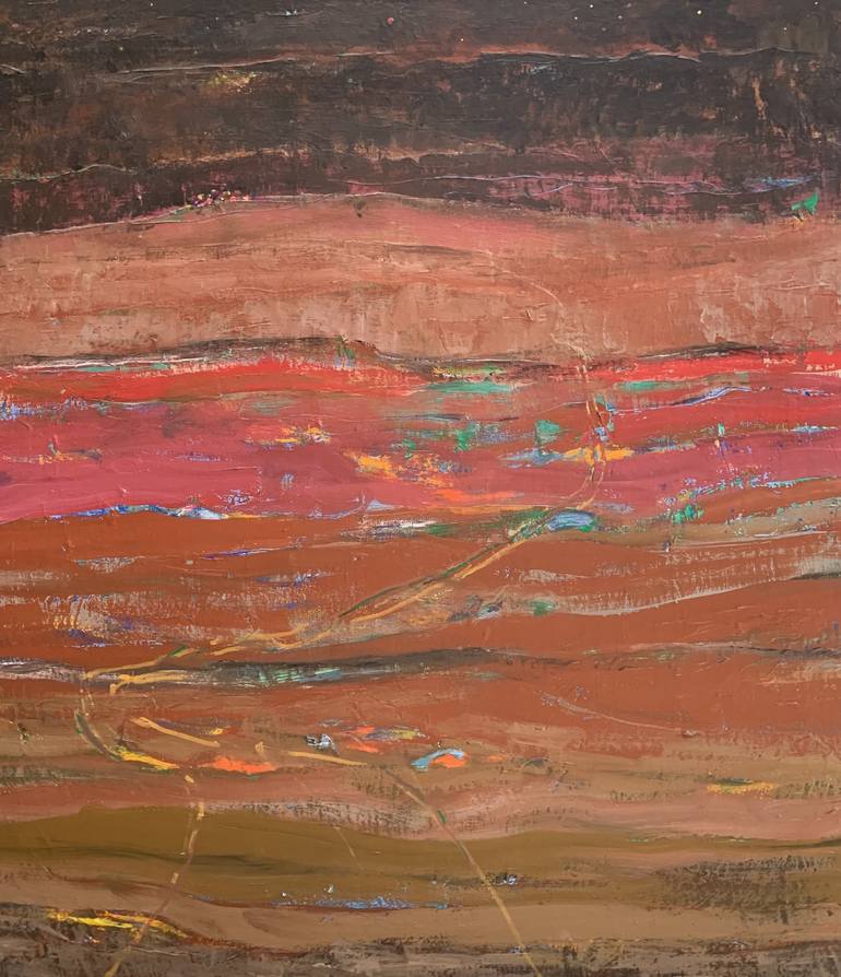 "2600 and something" is an expressionistic painting that began with the faint image of a bust, which gradually transformed into a vibrant landscape. The artist skillfully blends acrylics on canvas to create a captivating scene with blue, green, yellow, red, and dark nuances. The painting evokes a s...