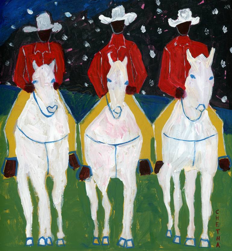 I'm drawn to the space between abstract and representational art. I love using bold colors and thick impasto to build up texture and depth. My brushstrokes are often gestural and expressive, adding a sense of movement and energy to the canvas. I aim to create a dynamic interplay between form and expression, where the elements on the canvas harmonize to create a unified whole. Whether I'm painting figures, objects, or landscapes, I seek to capture a sense of quietude and introspection. Cowboys, horses, and human figures are recurring subjects in my work. I'm fascinated by their energy and stillness, and I enjoy reimagining them through my artistic lens. My creative process is fueled by an exploration of color, texture, and form. I find inspiration in both the natural world and the human experience, and I strive to translate those observations into compelling visual narratives.