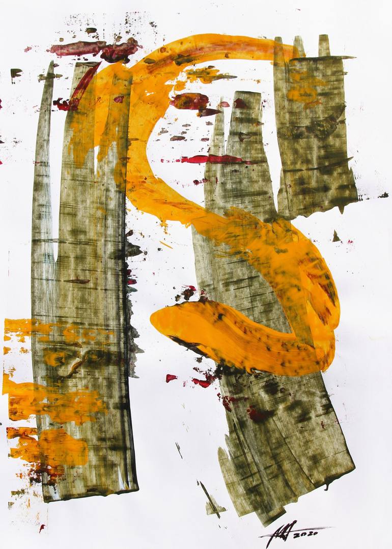 A series of abstract artworks created by acrylics on paper. Size 60x84cm. Sold without framed or passe-partout.