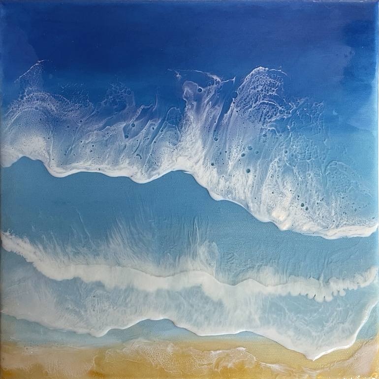 This original 3D epoxy resin seascape captures the movement and depth of ocean waves through layered resin and textured details. 30x30x4 cm Inspired by the sea and its constant motion, this artwork was created by pouring multiple layers of pigmented epoxy resin over canvas, combined with real sand ...