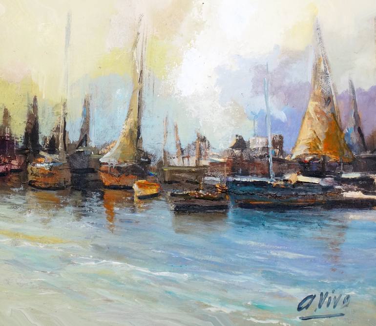 "Painting the sea and sky provides me with the perfect excuse to express myself in my love of color and bold strokes. The abstract aspect of my paintings enables me to experiment and get lost in the imagery it evokes, while allowing the viewer to interpret the work through their own feelings and emotions. There is nothing shy about the sea nor in my work!", says the artist. Having honed his craft for more than 30 years, Vivo's body of work encompasses various themes, from realistic and semi-abstract landscapes, seascapes and beaches, to abstract human forms and shapes. His preferred technique is oil on canvas or board using palette knives and brushes, with bold strokes and colors. For many years, he held the position of Director of The Painters & Sculptors Association of Uruguay. Vivo currently heads his own atelier, located in Montevideo, where he teaches art and exhibits his paintings. His work is included in private and corporate collections worldwide. He has been awarded several prizes at art contests for paintings, drawings and installations. He has illustrated books and book covers.