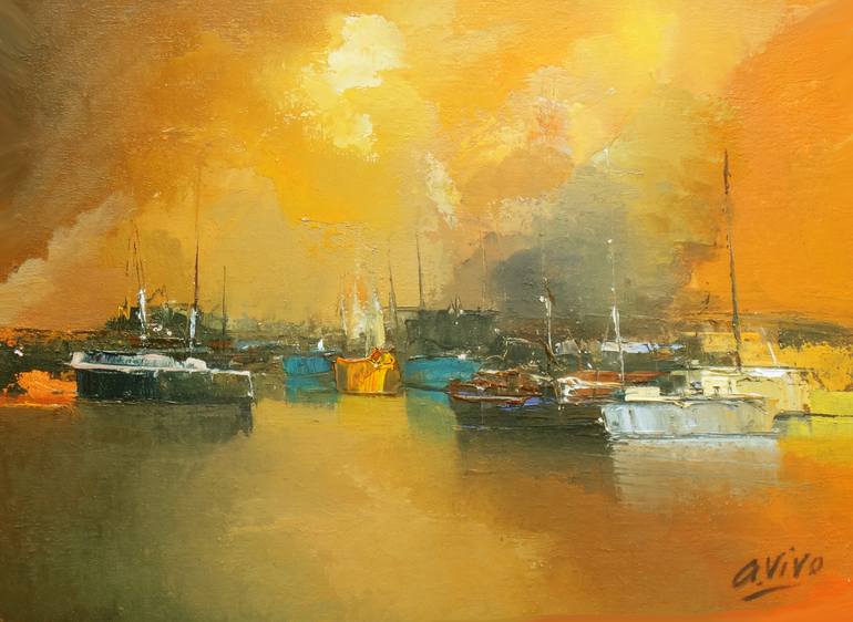 "Painting the sea and sky provides me with the perfect excuse to express myself in my love of color and bold strokes. The abstract aspect of my paintings enables me to experiment and get lost in the imagery it evokes, while allowing the viewer to interpret the work through their own feelings and emotions. There is nothing shy about the sea nor in my work!", says the artist. Having honed his craft for more than 30 years, Vivo's body of work encompasses various themes, from realistic and semi-abstract landscapes, seascapes and beaches, to abstract human forms and shapes. His preferred technique is oil on canvas or board using palette knives and brushes, with bold strokes and colors. For many years, he held the position of Director of The Painters & Sculptors Association of Uruguay. Vivo currently heads his own atelier, located in Montevideo, where he teaches art and exhibits his paintings. His work is included in private and corporate collections worldwide. He has been awarded several prizes at art contests for paintings, drawings and installations. He has illustrated books and book covers.
