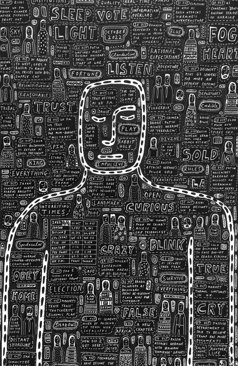 Ralph Lazar chronicles his own life and the world around him. He contemporaneously documents current affairs by creating art in real-time as the news unfolds, and combines this with a stream-of-consciousness self-expression inspired by people, words, music and travel. His work has been showcased at Art Miami (Context), The LA Art Show, Art Palm Springs and Art Market San Francisco amongst others. In January and February 2020, his artwork appeared on 1,700 digital screens across New York City. Recurring themes through his work are current affairs, race relations, Civil Rights, US Presidential history, the US Supreme Court and the US Constitution.