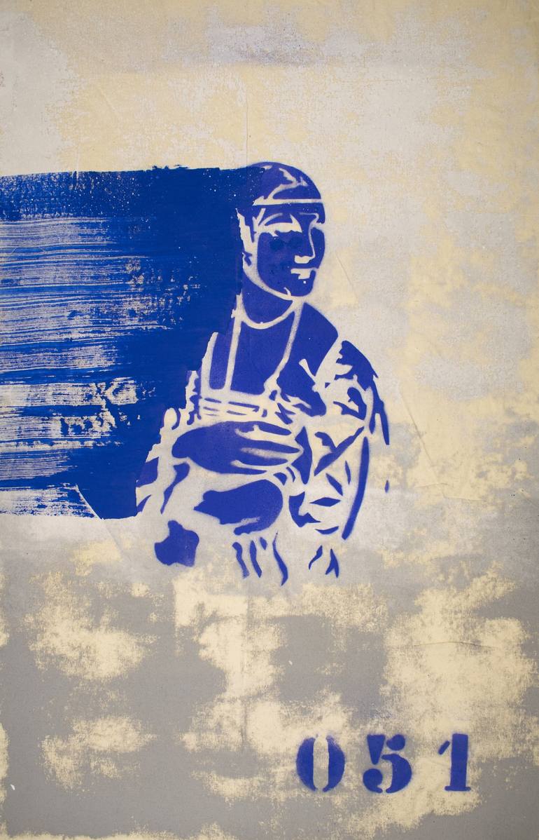 Needs frame ships in a tube Canvas only without rigid support! A delicate beautiful grayscale creates an image that almost looks like cement, the powerful and bright blue over this texture generate and impact visual look that it is almost imposible to resist