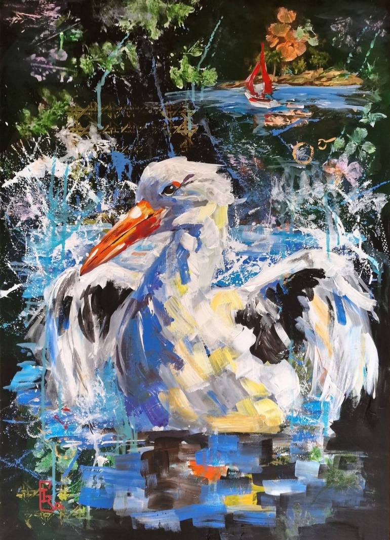 90 Kilometers per Hour In this painting, I conveyed my admiration for the northern gannet — a stunning seabird that inspires with its grace and strength. The gannet can accelerate up to 90 km/h before diving for prey and can reach depths of up to 30 meters. I used a palette knife to create expressi...