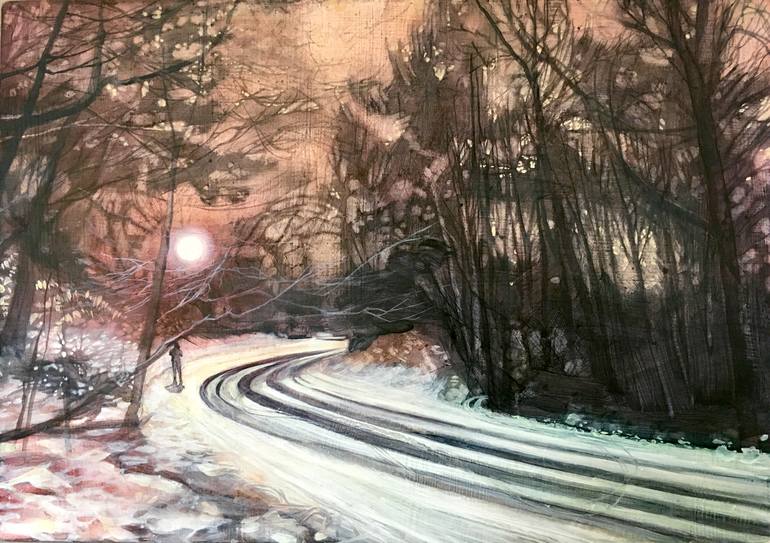 A Bend in the Road Oil on Panel 21x30cm That strange light and hush that dulls the city noises after a heavy snowfall