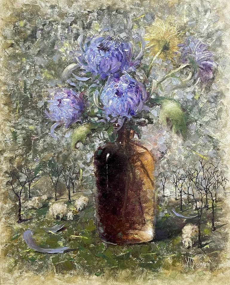 My paintings bring calm, clarity, and a sense of connection, transforming spaces into personal retreats. Each work evokes harmony, reflection, and emotional depth, offering collectors a unique experience. I draw inspiration from vintage aesthetics and personal memories, turning emotions into intimate visual narratives. I am a full-time professional artist, mentored by Volodymyr and Olena Ilyichov, and my paintings are held in private collections around the world. Each piece is one-of-a-kind, created with multilayer oil techniques using brushes, blades, natural materials, and everyday objects to build rich textures and depth. Every painting is uniquely handmade, making it impossible to replicate or counterfeit.