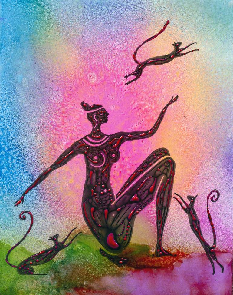 This painting was inspired by my wonderful trip to Oaxaca, Mexico, in summer 2024, and the Lea Reinhard fairytale 'A Cat That Wanted to Fly,' from the book Cat Ladies Fairytales, recently published and featuring this artwork as an illustration. In a distant land, where exotic flowers bloomed with a...