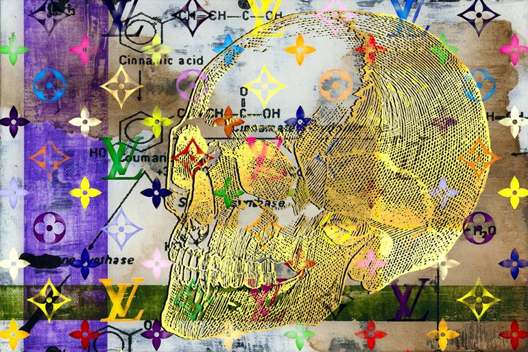 "A Certain Chemical Imbalance in Purple Green and Gold" is a 24" x 36" artwork on custom wood panel with oil, ink transfer, gold leaf, enamel and art resin. There are themes in this series of work referencing art history, wealth, luxury and mortality and I am attempting to aestheticize certain imper...