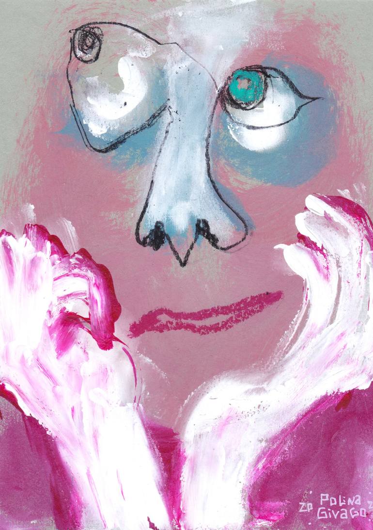 Acrylic and pastel on special paper. A woman pretending that she is listening, but in fact daydreaming 2022 Colors used here: magenta, black, coal, onyx, ebony, raven, charcoal, soot, stone, gold, eggplant, wine, raisin, lavender, purple, orchid, mauve, lilac, pink, fuchsia, ballet slipper, blush,...