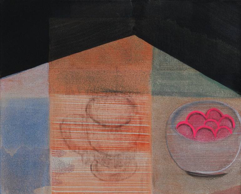 B.1971 Nairobi, Kenya. Ella is a painter who investigates her own experiences of the world. Her semi-abstract paintings incorporate a love of colour and pattern, absorbing and interpreting her surroundings she treads a fine line between representation and abstraction with the aim of sparking the viewer’s curiosity and igniting their imagination. Ella’s new paintings centre around the home, personal connections to treasured objects and interior spaces: A kind of magic realism with heightened colours and shapes which blur the boundaries between what is real and what is fiction. ‘Sometimes I’m remembering the moonlight pouring over the kitchen table in the early hours, its unworldly light changing the colours of everything in the room. Sometimes I’m sensing into the joy of connecting with people and sometimes a painting is born out of almost complete fiction, it becomes itself without too much thinking, it just is.’ Ella has exhibited widely in the U.K. Her work is held by collectors in the U.S. Canada, Australia, the Middle East, Europe and in the U.K.