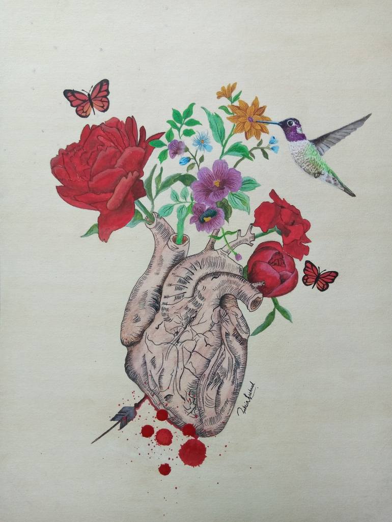 Painting presents a Heart with pain and flowers together. In this painting I show the behavior and sufferings of the heart. I used watercolor on wasli for this painting. In this painting, I have seen that a heart is sad, hurt and wounded inside, but in front of people, it takes a positive attitude, ...