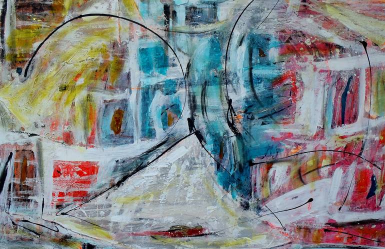 an abstract painting on wood ready to hang using different materials and my previous art works incorporated using different techniques