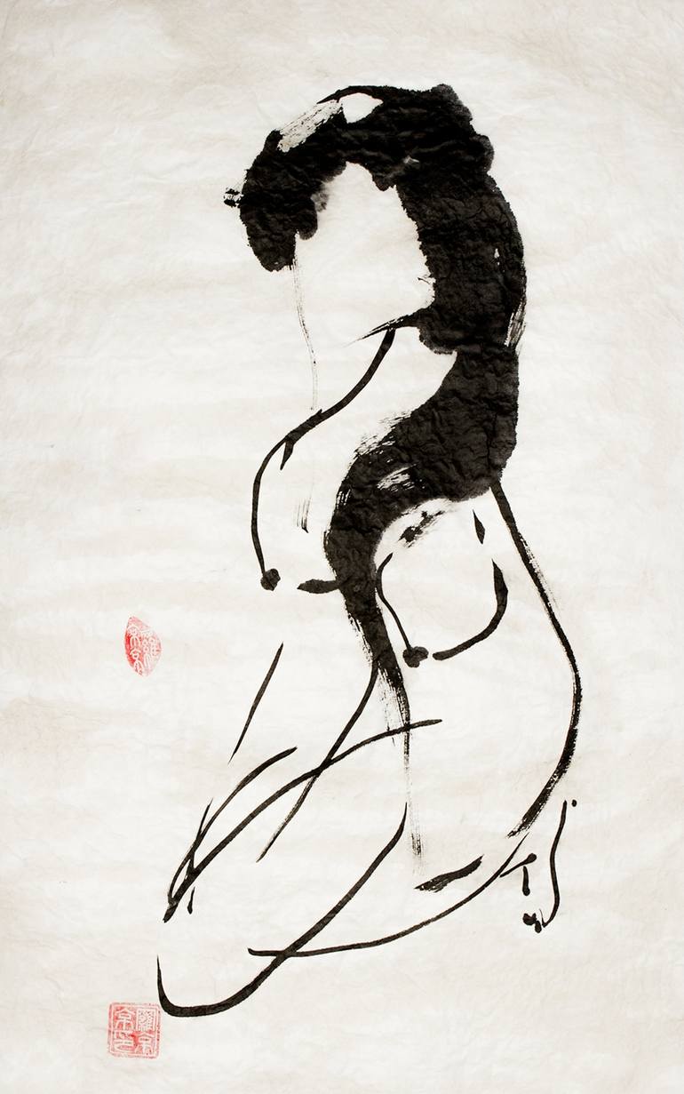 A Self portrait. The work was conceived by an accident I had. I imagined myself without face. I hope the viewers would imagine themselves without face as a communicative human. The black ink is perfect for the idea and actual image of the work.