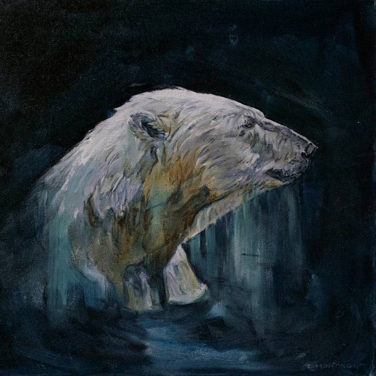 Christine Montague is an award-winning realism painter who creates beautiful, haunting and inspiring paintings about the iconic polar bear and its vulnerability to climate change. For the past decade she has used her skills (BFA, BSc.) to create realistic portraits of this highly intelligent, powerful apex predator against backgrounds symbolic to the threat it is under. Colour, canvas and various aesthetics symbolize wonder, hope and warning. Christine's polar bear paintings are in collections worldwide. Christine accepts custom and portraiture painting commissions, She is based in Burlington, Ontario, Canada. More about Christine Montague - When polar bears were listed on the Species At Risk Act, Montague began her passionate journey of painting polar bears. She uses her portraiture and realism oil painting skills, to document and celebrate the polar bear's character and spirit, its high intelligence (think great ape), and its survival in a world of vanishing sea ice. Through her travels to the Canadian arctic (Iqaluit & Cape Dorset, Nunavut) and subarctic (Churchill,Manitoba, Canada - polar bear capital of the world), Montague has furthered her knowledge on polar bears and climate change. In September 2017, "Dark Water 1", a painting of a polar bear in an unfrozen sea, took top award at the Canada wide Canadian National Exhibition Juried Show. “Dark Water”, Montague’s solo show of polar bears and climate change was exhibited at Toronto's Artworld Fine Art Gallery March - April 2018. (now Donna Child Galley) "on thin ice" is the name of Montague's solo show (Jan. 2 - March 1, 2020) at the Montgomery's Inn Museum, in Toronto, Ontario. In 2023, her 3rd polar bear solo show "Polar Bear Wonder and Warning" took place at the Fireside Gallery at Art Gallery of Burlington, Burlington, ON. Montague’s painting’s have been in over 80 art shows, and are award winning. Her work can be found in collections in Canada, U.S.A., the Netherlands, Denmark, Great Britain, New Zealand, and Australia.