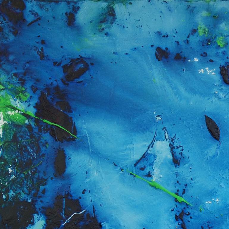This painting, done spontaneously, suggests an area of depth and mystery in which objects streak or hover. Is the area beneath the sea? Is it outer space? Is it some fantastical unknown realm? Is it my own interior space? Does it matter? As sometimes happens, while studying the painting after I fin...