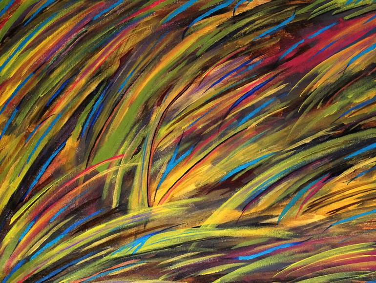 The swinging grass from a mild, mid summer wind. Varnished for protection. No frame, ready to hang. This high quality acrylic painting is done on gallery wrapped canvas, with no need for framing, as the edges are painted, or recommended to be frame in a black Grande Wood Floater Frame. This pain...