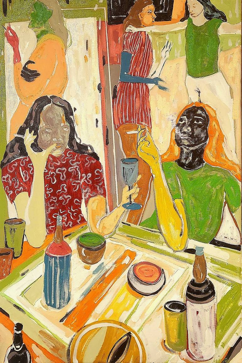 "A Moment Together" by Anahita Amouzegar Quality Oil and acrylic on canvas Varnished and framed