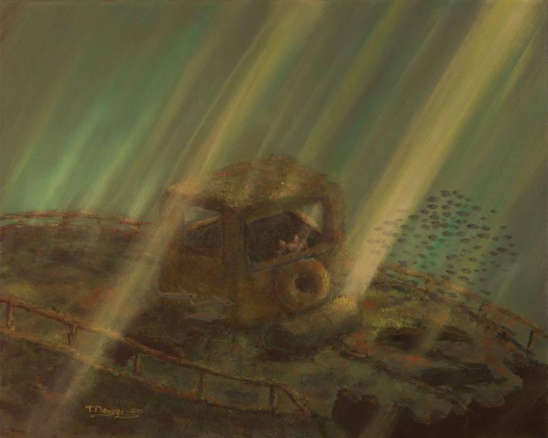 What can be more exciting than exploring the unknown? The sea, so vast, effortlessly hides treasures... and dangers . After unexpectedly coming across a sunken sailboat, I was moved to create the piece you see here. The simple sailboat was replaced with a boat whose last moments afloat are mysteriou...