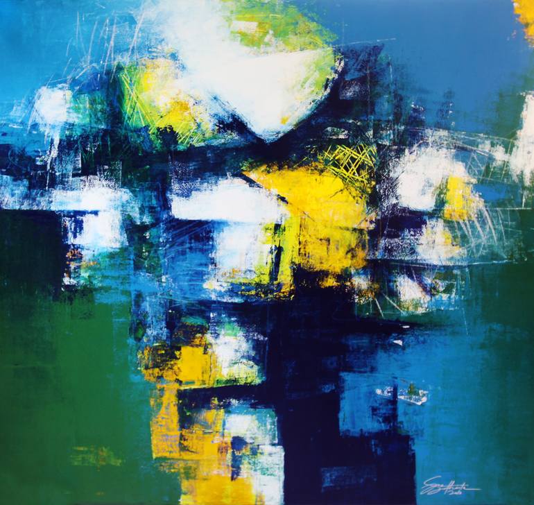 The material and medium for this abstract painting is acrylic on canvas combined with oil pastels, Created in 2013, Certificate of Authenticity by Sidharta Fine Art Studio. Dimension : 150cm X 150cm By buying my work, you are donating some of your money to help the education of underprivileged chil...