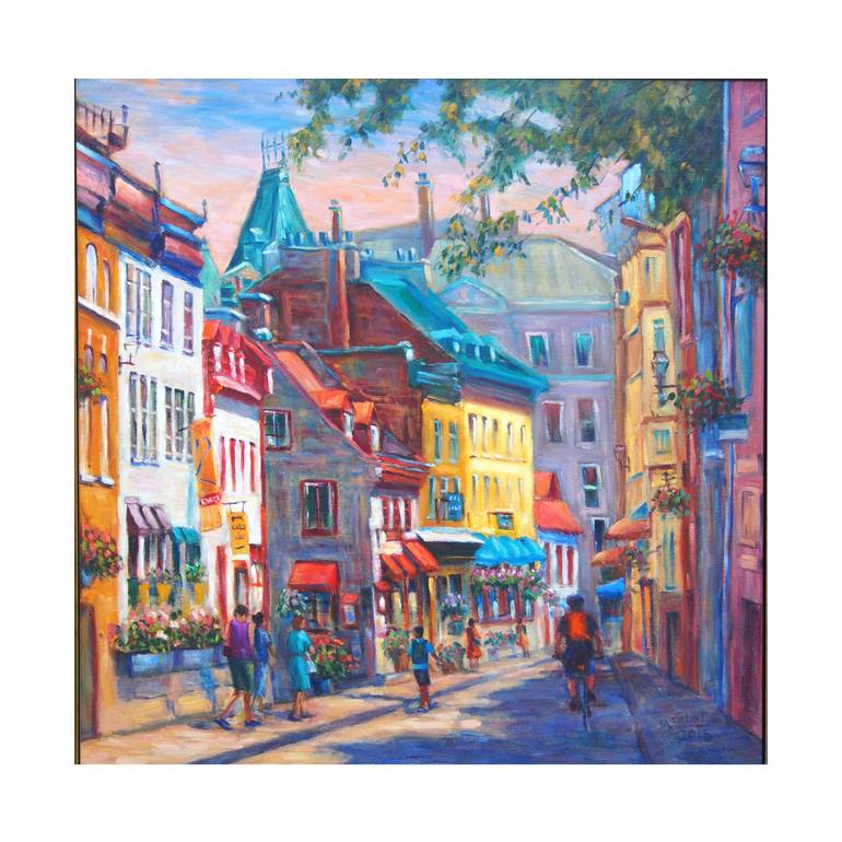 The colourful buildings, the bustling street scenes, and the old-European architecture, combine make Quebec City irresistible to artists and art-lovers. Oil is the ideal medium with which to bring out all these attributes, together.