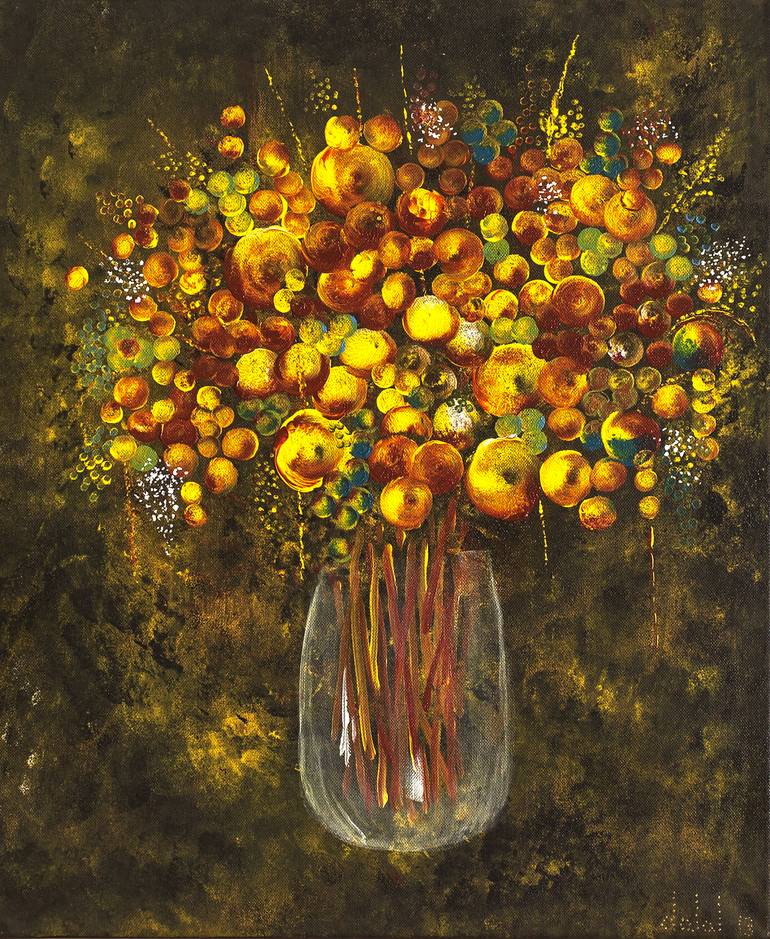 This painting represents the cells in everything including in the flowers. It is a bouquet of cells! Suitable for displaying in any room of the house.
