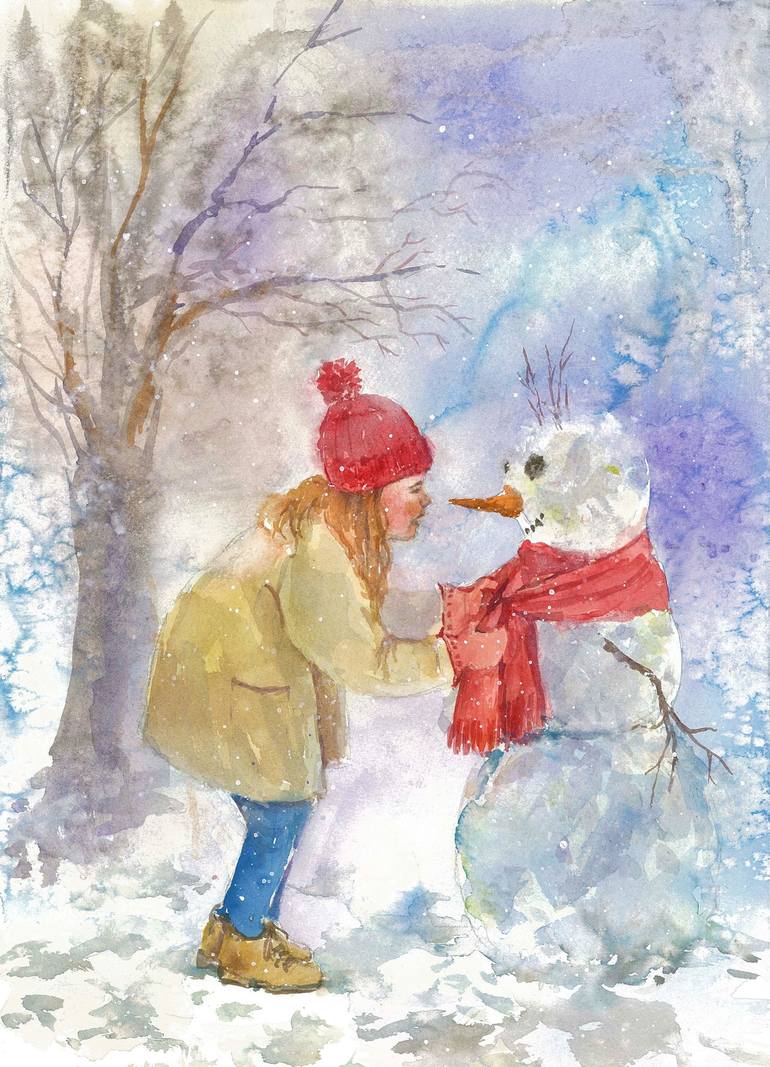 The painting depicts the winter friendship story of a girl and a snowman. In this work I wanted to show childlike simplicity and good nature. This painting will give you warm memories of childhood and winter. The painting is painted on paper with watercolor paints . Upon receipt, it can be issued i...