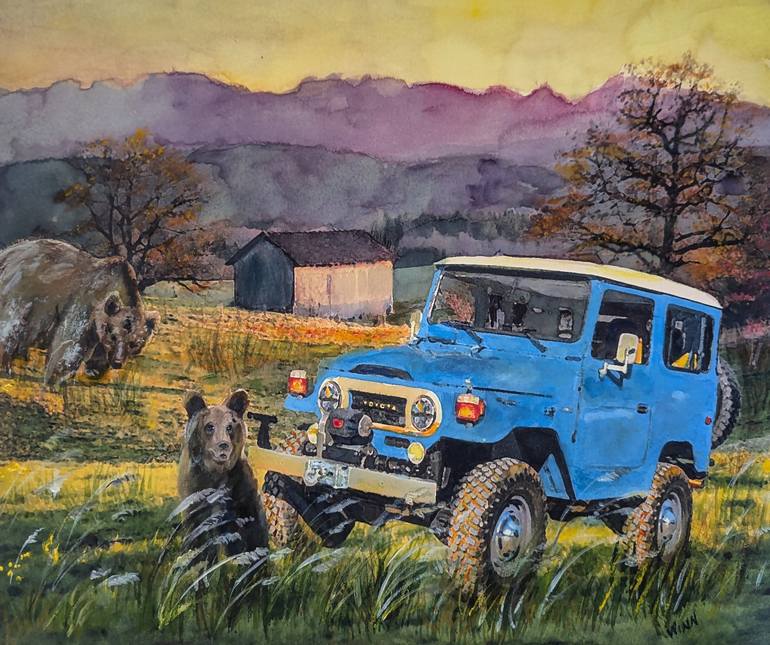 My car was broken down, I struck a deal with my mechanic to paint his Fj40 Land cruiser to fix my car. He didn't know what I would paint or how I would put his Land Cruiser into the painting, but this is what I came up with for him. I love a good swap. He did a wonderful job fixing my car, and he lo...
