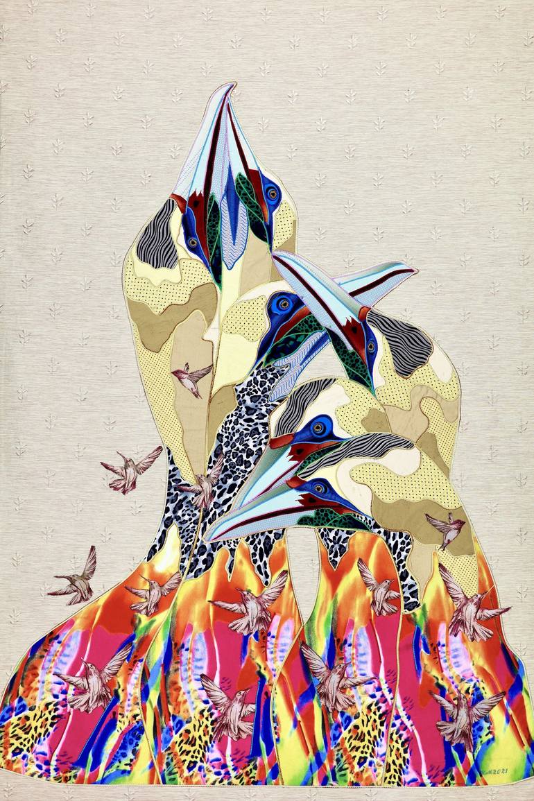 The artist's priority is the quality of the performance. Three types of Bursa silk are used in the work. The work is embroidered on thick canvas, three layers of adhesive fabric "ironing" Between each layer plus a web of adhesive fabric. All the work is glued together into a single monolith . The pa...