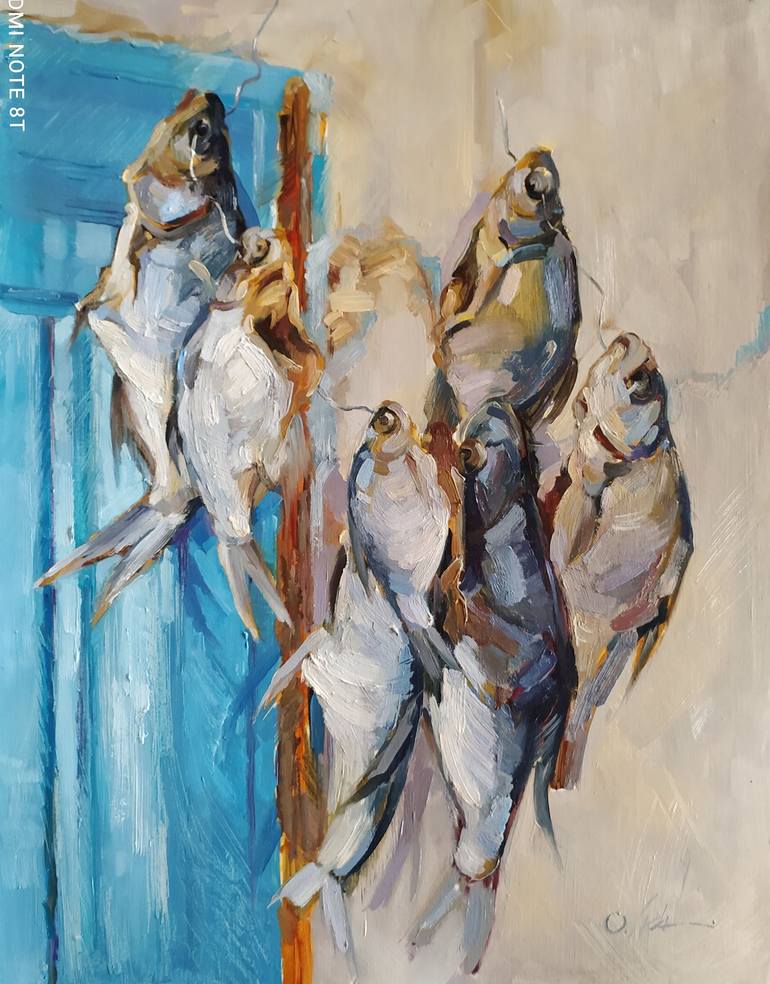 Отличный улов. Такая красивая речная рыба. Связка речной рыбы. В деревне так много интересных дел. Если деревня у реки. Лес, рыбалка... Свежая рыба необыкновенно хороша, красива. Всегда хочется ее изобразить. Еще одна картина из серии "Дачные зарисовки".