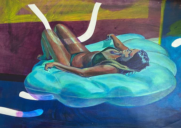 My artistic approach focuses on the representation of memories and recollections, mainly using paint on canvas and paper. I explore themes such as the passage of time and the effect of color on emotions. My style is characterized by its reality, its graphics, its vivid colors, its dreamlike, nostalgic and poetic aspect. My main source of inspiration comes from photos I take personally, from memories and vacations, but also from photos of unknown people I find on social networks. These moments in life are transposed onto canvas. Portraits, bathing scenes, solitude and memories of personal significance that have influenced my career are recurring themes in my work. By using social and cultural contexts in my work, I seek to convey the memory of my time, to leave a reminder of my daily life and that of unknown people.