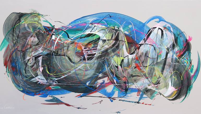 It is a sensational abstract painting in which very free and energetic strokes are combined with many others of the same quality, creating dense and empty spaces at the same time with forceful and equally energetic and moving colors, giving balance to the entire composition of the painting. . Here e...