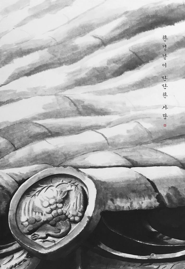 I draw Hanok which is Korean traditional house and write Hangul which is Korean word with ink and water. It’s been almost 7 years since I started drawing and writing thoroughly to heal myself and I feel growing up as I keep working on it. I think Hanok and Hangul are the most significant cultural aspects that represent Korean identity. They have taught me how to live a life that suits me and allowed me find myself. As a Korean, it is natural for me to interpret Korean stories and I’m always grateful to work with familiar elements. Through my works, I portray the beauty of emptiness and importance of simplicity. I believe there are nuances that can not be conveyed through the excessive use of technique or colors. I implement the negative spaces as many as possible so that they can control within composition on the canvas freely. I also attempt to show the beauty of Korea by juxtaposing Hanok and Hangul with delicate lines, natural smudges and neat calligraphy. I contemplate finding balance within the tension between precision and ambiguity which I think is the foundation of traditional Korean art. Therefore, I strive to represent honesty and moderation, and it is not only an artwork but also an artist who communicates with the works frequently. Hanoks inspire and fascinate me first, then I start painting in the most comfortable way I can. Now this is my life and I’m used to this pattern of life. Whenever I meet people who are impressed by my works, I feel we are connected. I would love to help people appreciate the aesthetic of Korea through my works and I’ll keep listening what my works and my mind are telling me as I grow.