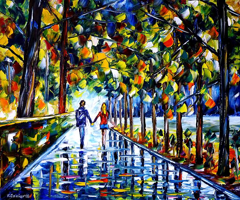 I was born on 12 August 1968 in Boleslawiec, Lower Silesia (Poland). Since 1981 I live in Heilbronn, Germany. Mainly I paint with palette knife and oil paints. Certain motifs return in my paintings again and again. Landscapes, city scenes and lovers walking hand in hand. Animals, mothers with children and older people also accompany my canvases. My paintings are characterized by a greatly reduced color palette, which still appeals to the viewer as very lively. It is not important to me to represent everything correctly. But much more, a monotonous scene to transform into a colorful life with fast palette knife work. A cold gray landscape turns flaming yellow and red.