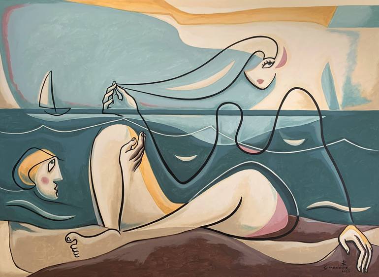 A waterside rendezvous Bernard Simunovic, 2023 acrylic on canvas 110 x 150 cm