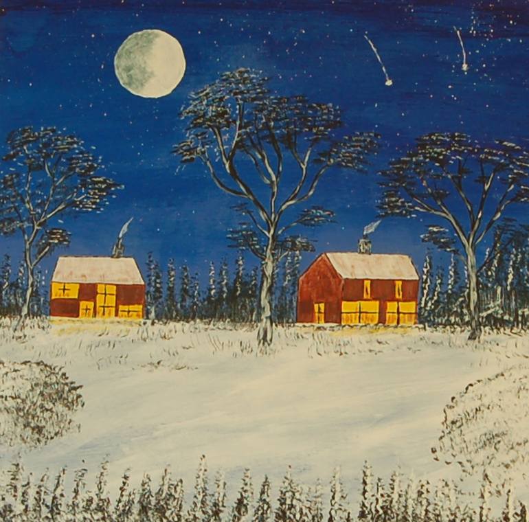 A winters night is done on hardboard with Acrylic. The buyer will get a signed certificate and a photo of the painting and of the artist wow that's me. Thanks for looking . Check out all my paintings please. Import customs tax to the buyers country to be paid by the buyer. Thanks Ken.