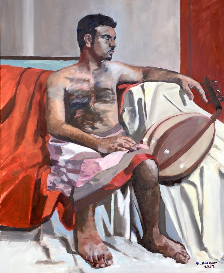 Inspired by EDGAR DEGAS this work reelects contemporary life style in the middle east. Lute still a main instrument in local music in the modern time. Nudity is not common in a conservative society like Saudi Arabia but this is just a reflection of how young people adopted western life style and rea...