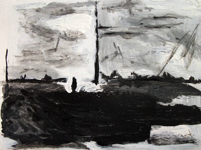 ABSTRACT, MODERN LANDSCAPE #01- Black and white landscape, tempera on paper painting serie is a series of works focused on abstract landscape, modern, surreal, visionary, minimalist, synthetic, black and white, painted with ink, tempera or gouache and mixed media. If you buy an original or a prin...