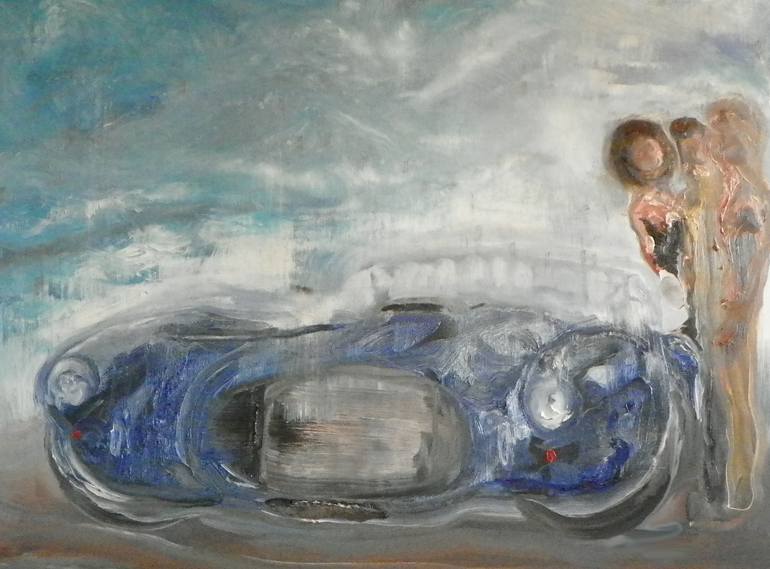 Cool people hanging out around their cool car. Oil on canvas, 36" x 48".