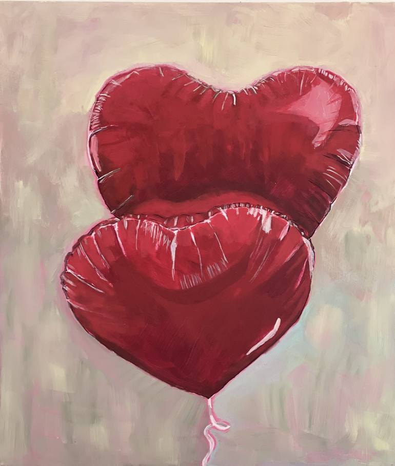 This painting was inspired by two red balloons I've seen at the local Caffe during Valentina's day. I've taken a picture of it and went straight home to paint it . . . In my painting I've tried to convey to the viewer the feeling of happiness , freedom & love I've felt as I watched the actual ballo...