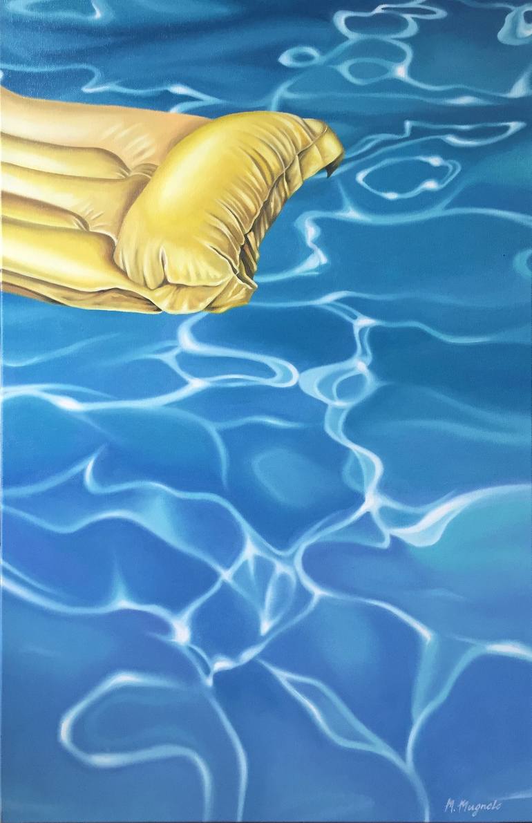 MARTIN MUGNOLO is a pro artist with more than 25 years of experience painting. Meticulous attention to detail and his mastery of hyperrealism bring these scenes to life with almost photographic clarity. The contrast between the solidity of the human figures and the whimsical, often vibrant inflatables highlights a sense of tension and balance, drawing the viewer into a contemplation of both the physical and the whimsical. Mugnolo’s “Disruptive” series not only showcases his technical mastery, but also his ability to infuse a dynamic narrative into his works, creating scenes that appear to be in a constant state of change and fluidity.