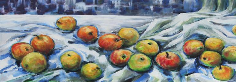 Thinking about a client who likes to fill long and narrow space on the wall and has an specific affection to apples.