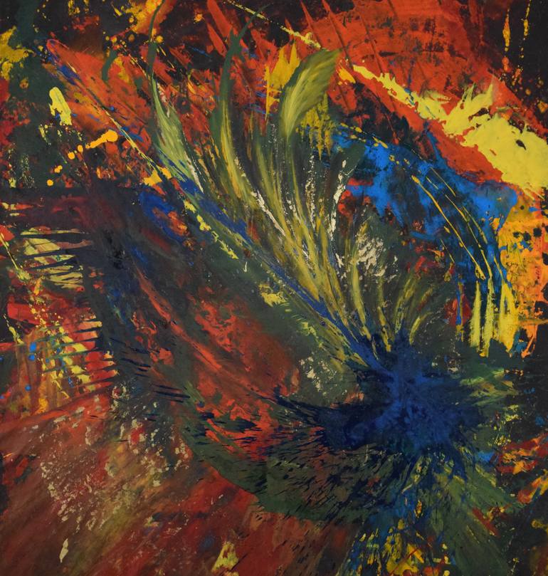 Abstract painting inspired in scarlet macaw colors. One of more beautiful birds that you can find in Medellin-Antioquia-Colombia my city.