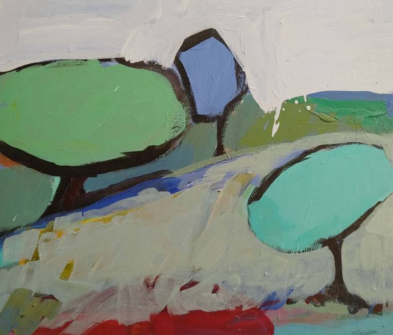 Este cuadro forma parte de la serie MAYO, que consta de cuatro pinturas. Se trata de explorar la naturaleza, para extraer textura, forma y color y llevarla al campo de lo pictórico. A nivel formal, las pinceladas en negro delimitan los espacios de color, y hacen referencia a los árboles. El resto de...