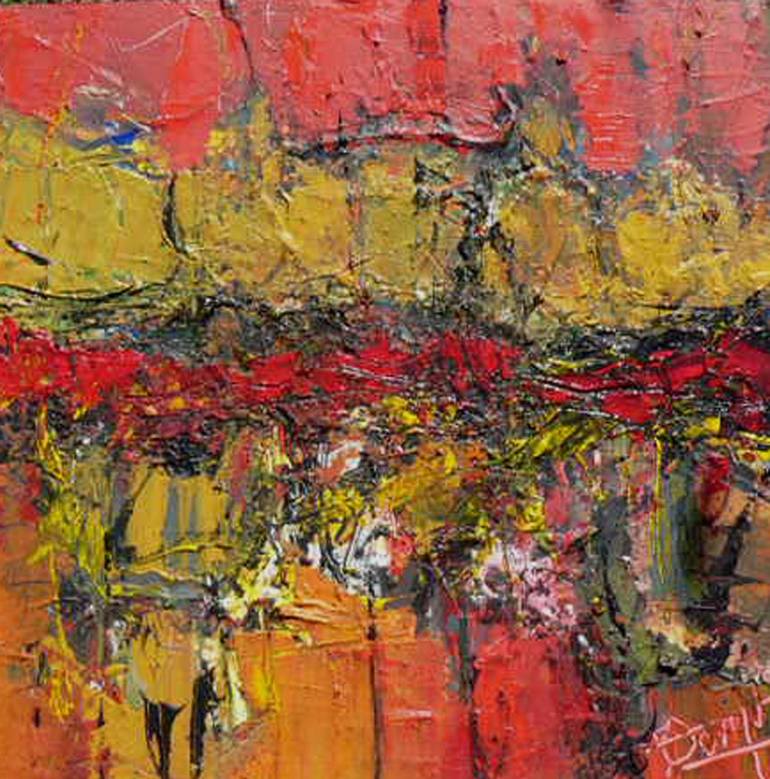 Peinture en techniques mixtes sur toile 3D (bords larges 4 cm) Abstraction aux couleurs d'automne, Signée sur le devant et au dos, Prêt à l'accrochage.