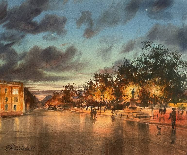 I’m inspired by nature and changing lighting an colours that I try to convey in my paintings. The work was done in the "wet on wet" technique . All my works are painted on high quality cotton paper with professional fade-resistant watercolors. Each watercolor work is covered with a special pr...