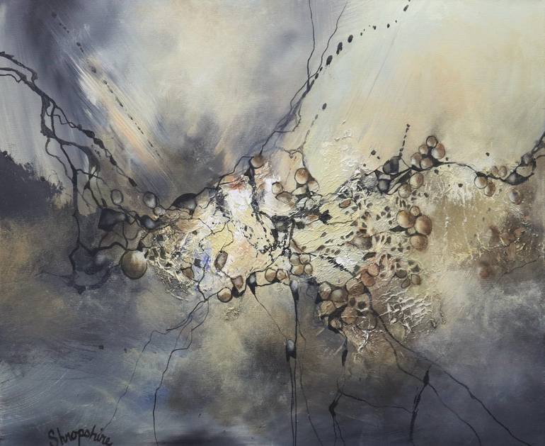 Have you ever wondered about the origin of life? Abiogenesis, the scientific study of the origin of life, explores the natural process by which life has arisen from non-living matter, such as simple organic compounds. This painting reminded me of living molecules and strands of DNA under a microscop...
