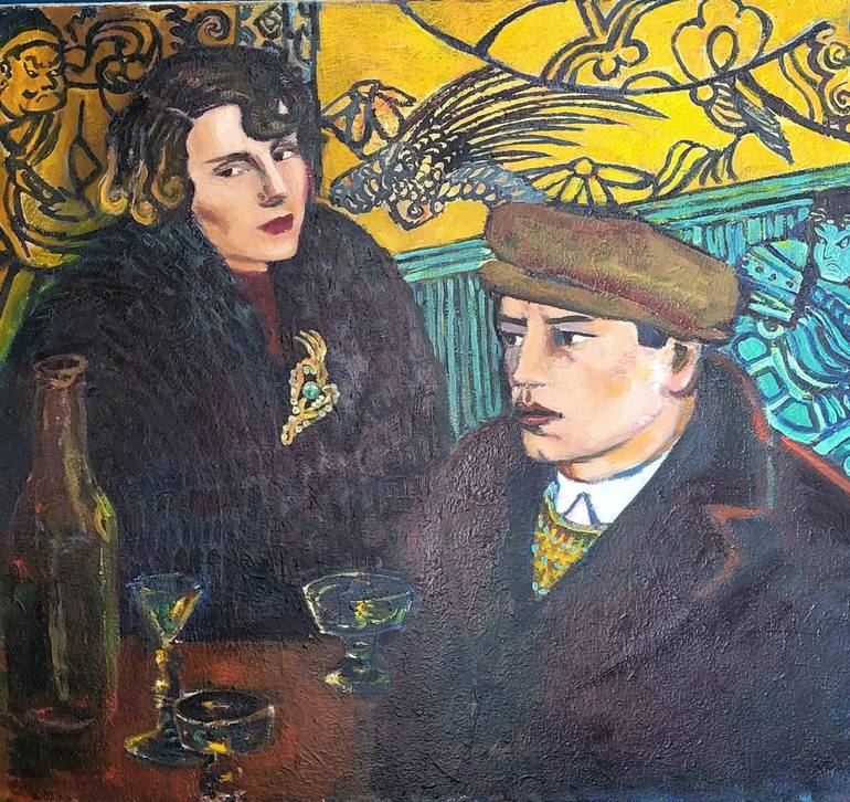 I create scenes of subtle intrigue or camaraderie inspired by the dynamics between people in pubs and in social gatherings, My paintings celebrate an old and decadent time with a dash of 1980's glamour.