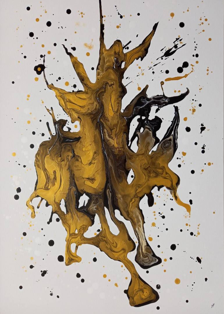From reality to abstract. Drawn with acrylics on canvas. Used black, white and gold acrylic paints. Gold paint glistens in the light and in the sun. Emotional outburst. Charges with good mood :) 2021 This acrylic work does not need a frame. Can be hung directly from the packaging. He pulled it out a...