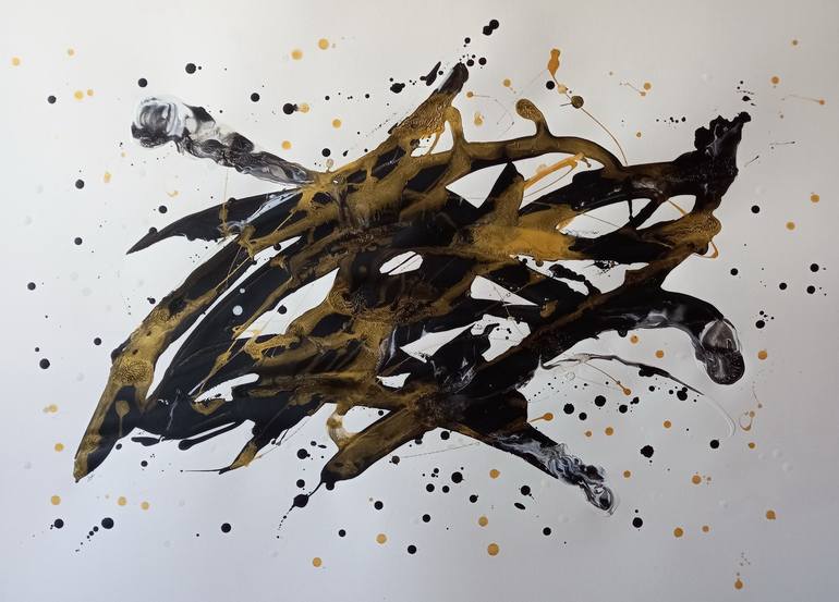 From reality to abstract. Drawn with acrylics on paper. Used black, white and gold acrylic paints. Gold paint glistens in the light and in the sun. My abstract paintings are a transfer of my emotions, positive mood, joyful emotional experiences to the plane of the paper, which I want to share with y...